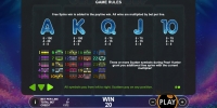 В таблице перечислены множители расчета выплат, объясняются правила, рассматриваются особые символы, а также демонстрируется схема расположения активных полос на барабанах.
