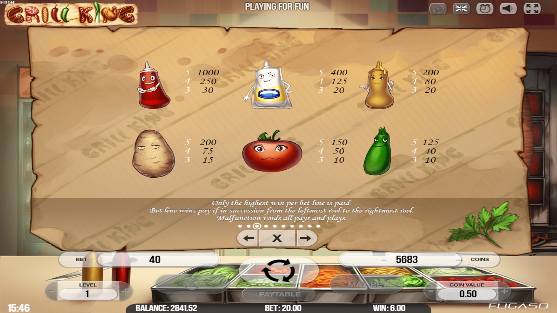 «Король гриля» - видео-слот с пятью барабанами и двадцатью картинками на главном экране.