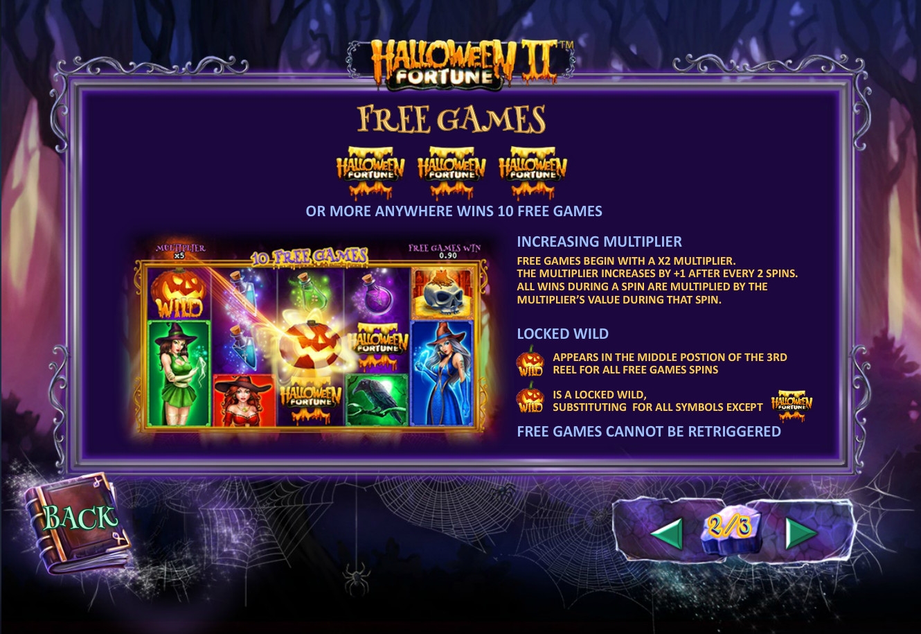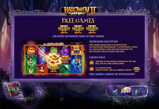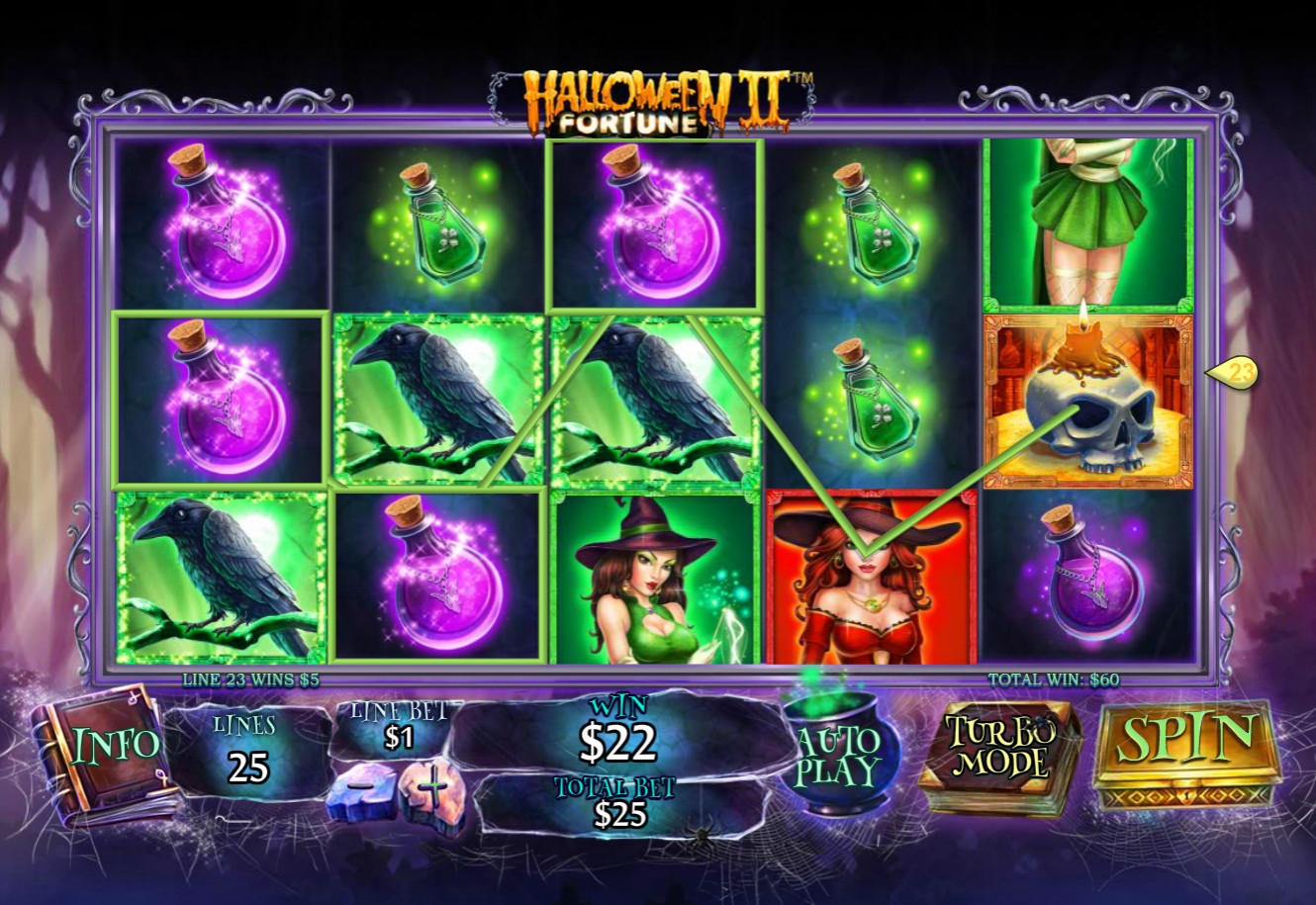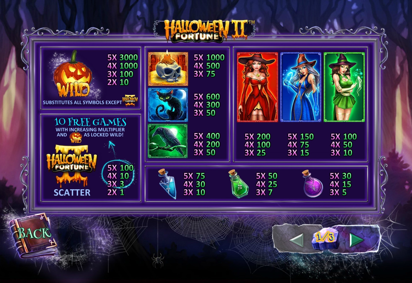 Halloween Fortune II – игровой аппарат с пятью барабанами и двадцатью пятью постоянно задействованными линиями. На экране предусмотрены пятнадцать ячеек для картинок.