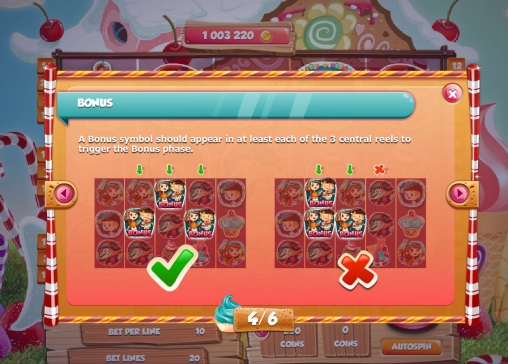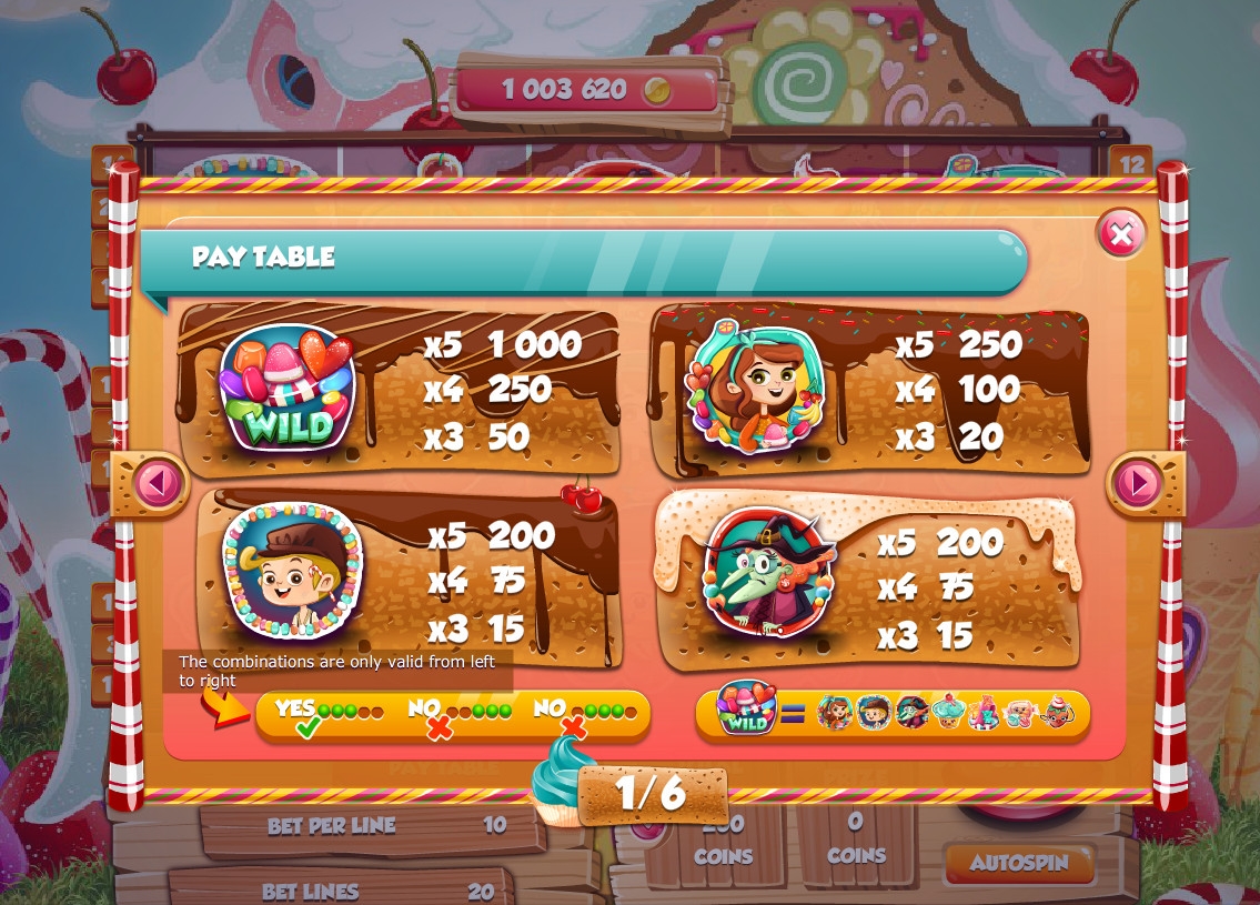 Помимо Гензеля, Гретель и злой ведьмы, на экране слота появляются различные сладости, которыми старуха пыталась заманить детей в свое логово.