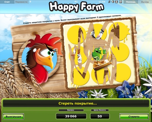 Happy Farm – бесплатная скрэтч-карта для игры в интернет-казино. Она состоит из виртуальных билетов, в которых по схеме 3х3 располагаются девять ячеек под защитным покрытием.