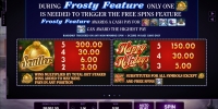 В призовых спинах деньги на кон за клиента ставит казино. Здесь оплачиваемые цепочки образуются 1024 способами. Кроме того, снеговик может превращаться в четыре других простых картинки, способствуя формированию выигрышных последовательностей.