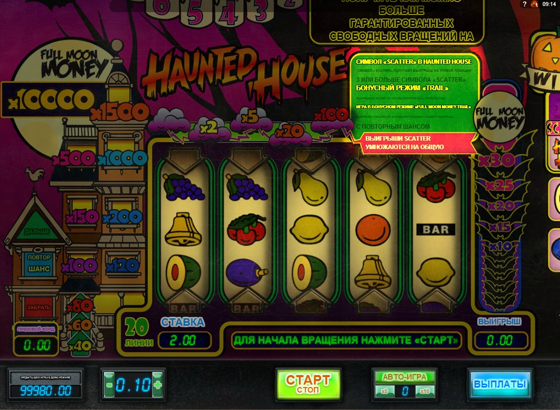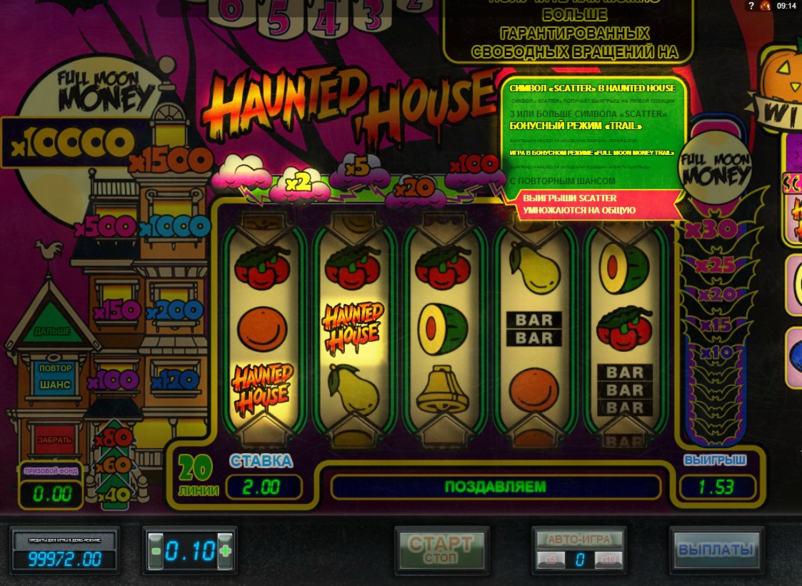 Прогрессивный джекпот в Haunted House не предлагается.