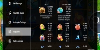 - Paytable – просмотр коэффициентов выплат по комбинациям