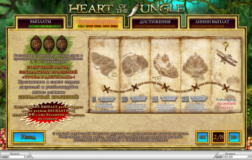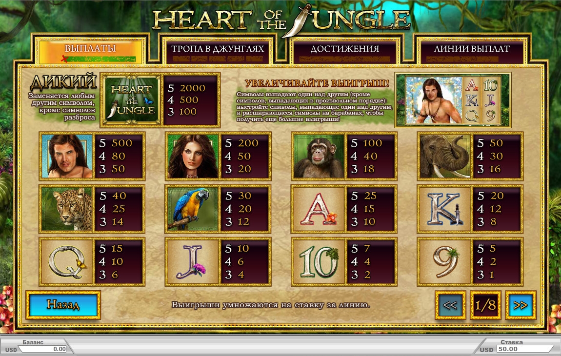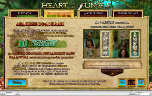 Heart of the Jungle – видео-слот с пятью барабанами, пятьюдесятью постоянно активными линиями и тремя рядами символов на основном экране.