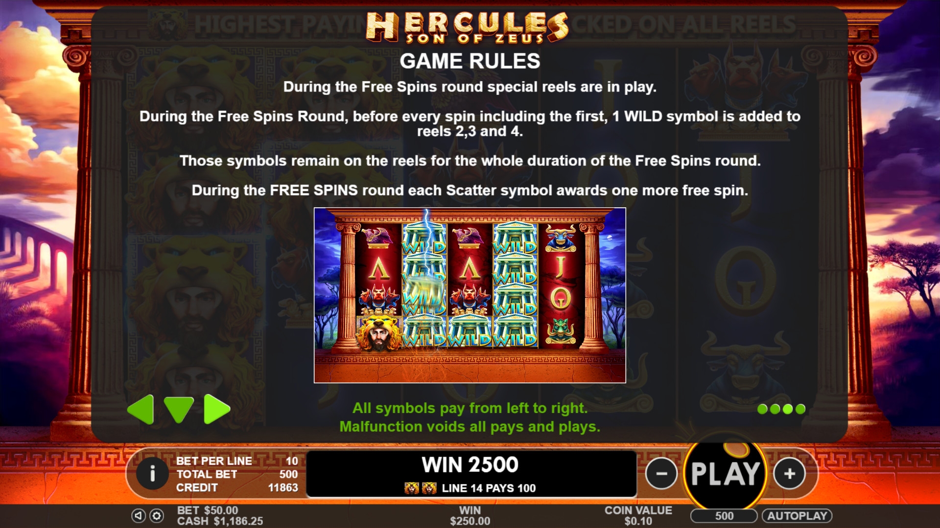 Игры по равным шансам в Hercules Son of Zeus нет. Исключения из общих правил и дополнительные бонусы рассматриваются ниже.