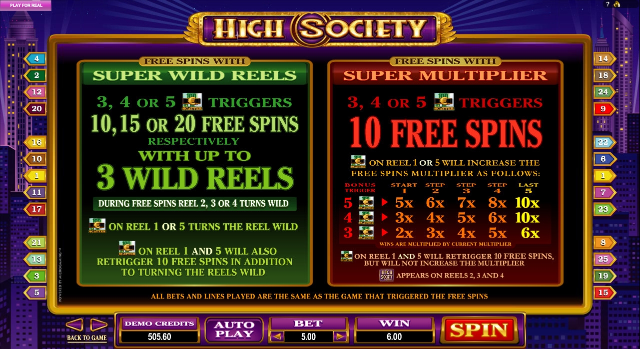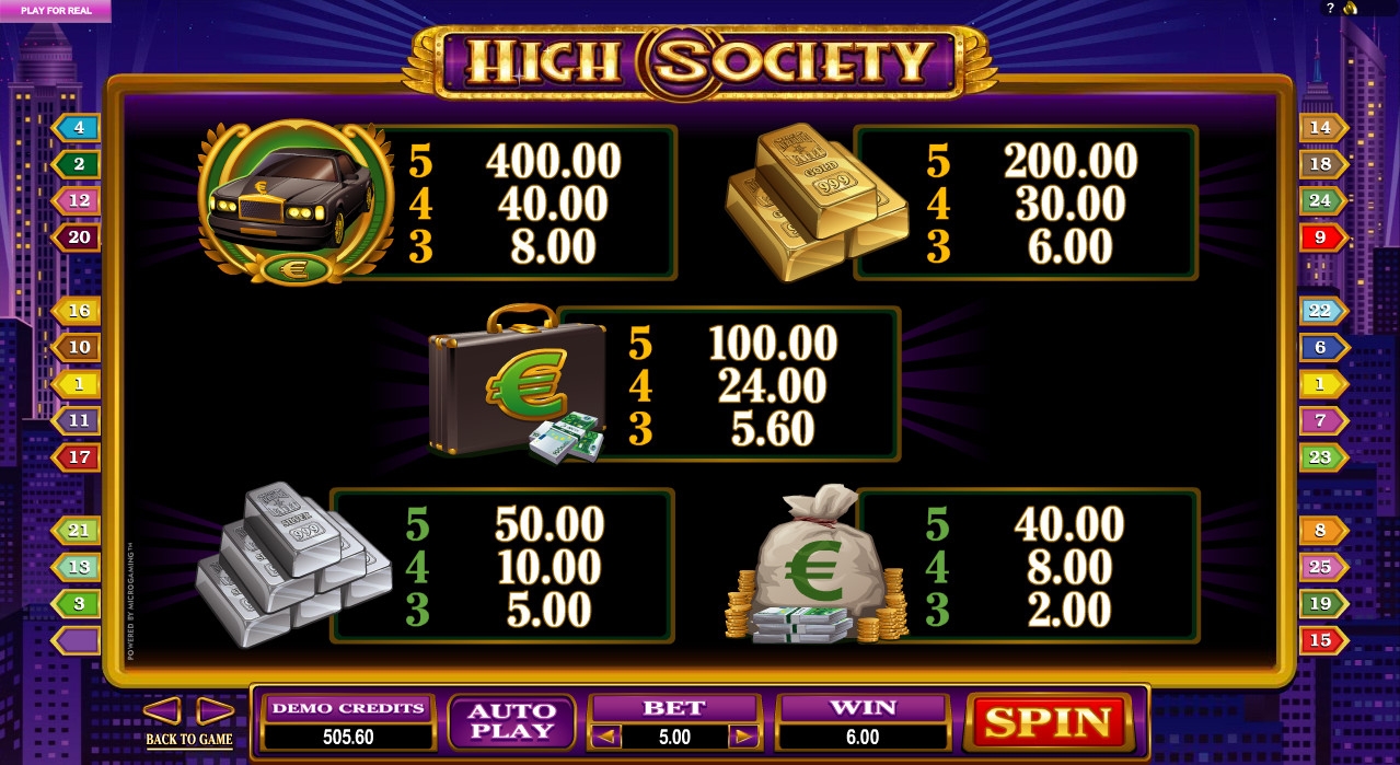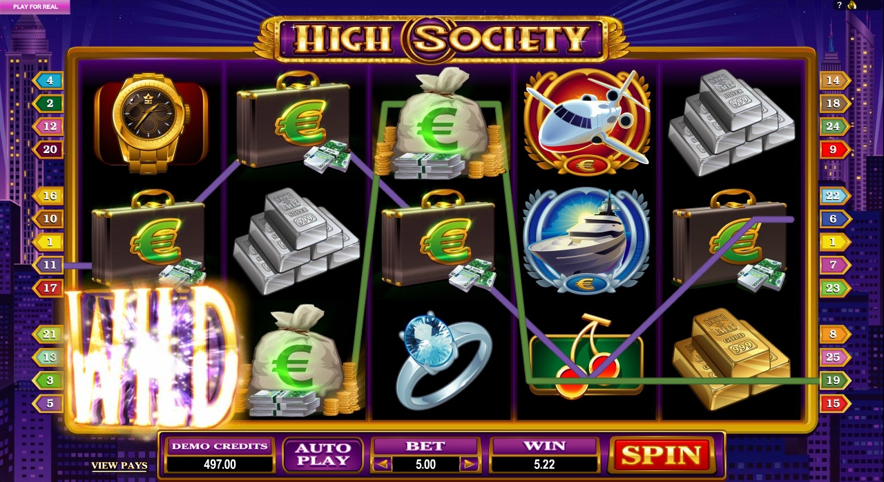 Новый бесплатный игровой автомат High Society от компании Microgaming посвящен весьма банальной теме – богатому высшему обществу, стать членом которого мечтают многие пользователи интернет-казино, еще не принадлежащие к нему. Наверняка вы уже тестировали много подобных моделей, но рекомендуем все же испытать и этот видео-слот, потому что он не лишен интересных особенностей.