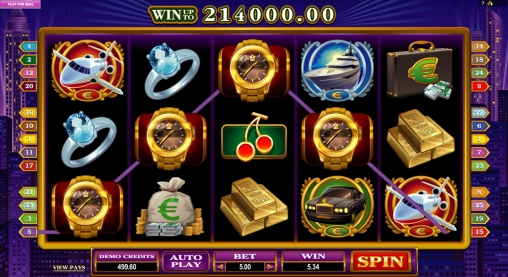 Уже по названию «Высший свет» можно догадаться, какие картинки нарисованы на барабанах видео-слота. Конечно, это золотые часы и запонки, перстни с бриллиантами, слитки золота и серебра, дорогие автомобили, мешки и кейсы с деньгами, а также яхты и самолеты.