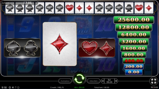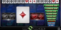 Игра по шансам запускается по желанию клиента. Здесь нужно угадывать цвет карты. Каждый правильный ответ увеличивает выплату в два раза. При ошибке вы лишитесь всех кредитов, стоящих на кону. Лимиты обозначена прямо на экране справа.