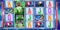 На экране слота появляются три игрока, шайба, шлем, коньки и номиналы карт от валета до туза. Хоккеисты занимают сразу четыре позиции на барабанах, поэтому любой из них может заполнять всю колонку.