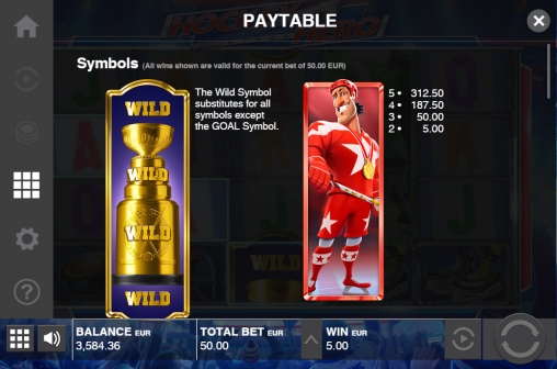 Размер выплаты определяется умножением ставки по линии на коэффициент сформировавшейся комбинации. Он бывает в Hockey Hero от х2 до х250. Если цепочек несколько, кредиты суммируются.