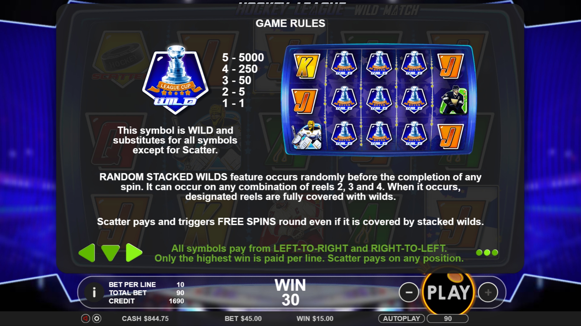Прогрессивный джекпот в Hockey League не разыгрывается.