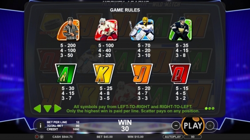 Хоккейная лига это новый видео-слот, посвященный знаменитой НХЛ, где можно во всей красе увидеть любимых звезд. В игре нет бонусной игры и прогрессивного джек-пота, но она интересна.