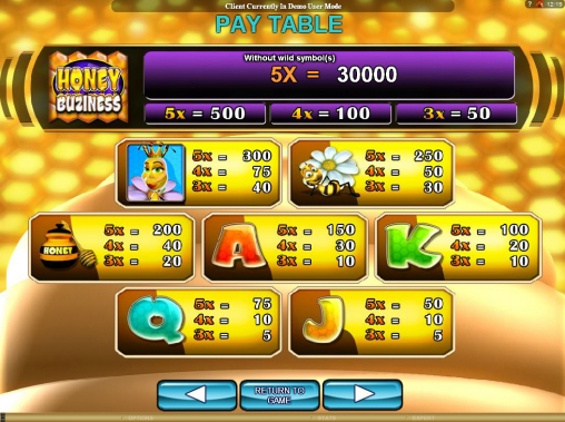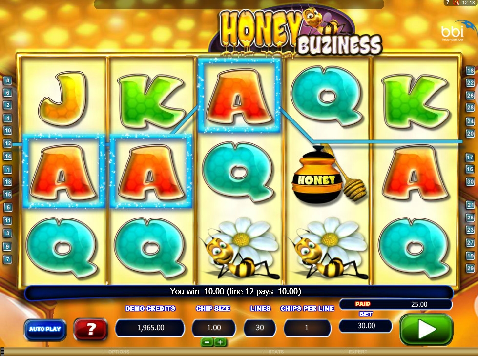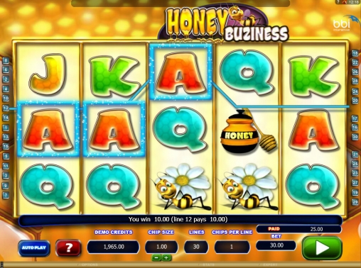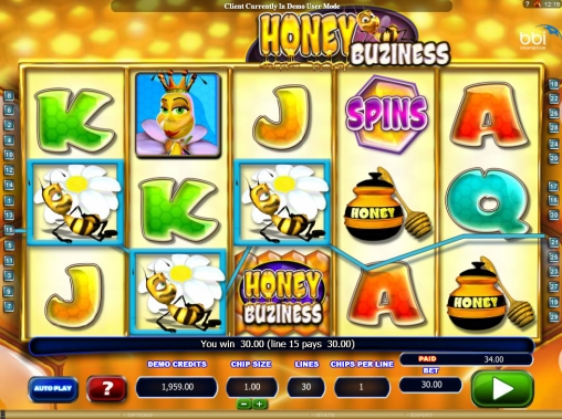 Honey Buziness – это модель с пятью барабанами и тридцатью активными полосами, задействованными в каждом спине. На них принимаются ставки только одинакового размера. Они могут быть от одного цента до одного доллара, а на спин принимается до тридцати долларов.