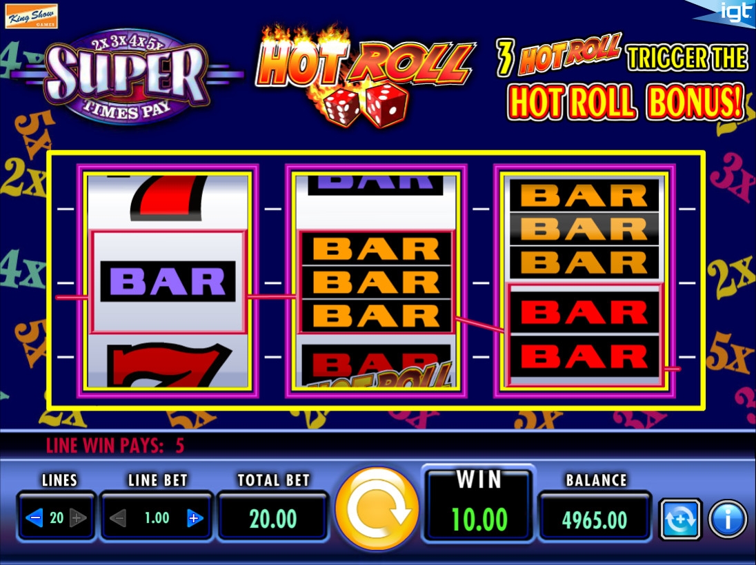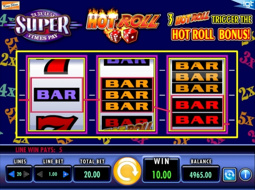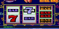 - Hot Roll – На барабанах выпадают разновидности семерок и BAR с надписью Hot Roll поверх основной картинки. Три таких символа на экране дают старт бонусной функции.