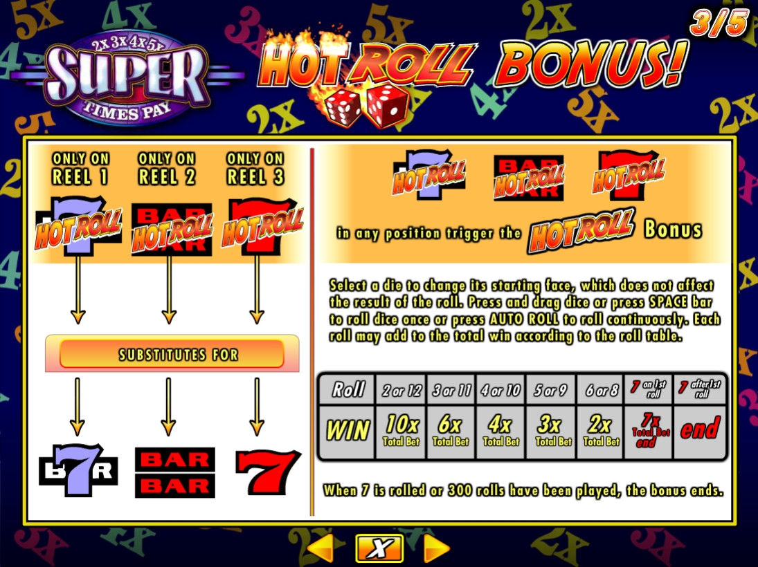 Кроме базовых символов, в Hot Roll есть несколько картинок с особыми возможностями, дополнительные множители расчета выигрышей и бонусный раунд с участием игральных костей.