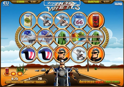Специальными символами в игровом автомате Hot Wheels являются Wild (байкер) и Scatter (банка с энергетическим напитком).