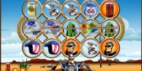 Шлем, вывеска мотеля, дорожный знак «Шоссе 66», ключ с брелоком в виде черепа, сигареты, пистолет заправки, карта и различные инструменты – все это изображено на барабанах видео-слота Hot Wheels.
