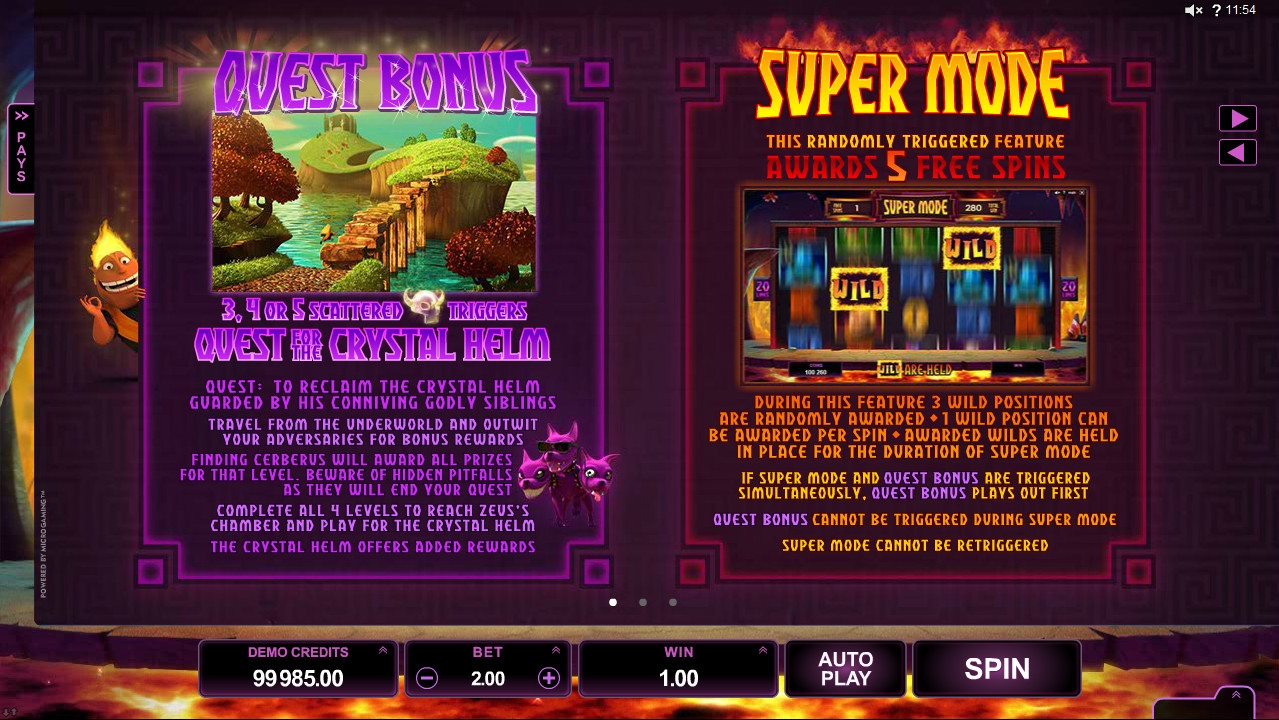 В Hot as Hades есть две призовых опции: бесплатные вращения Super Mode и раунд Quest Bonus.
