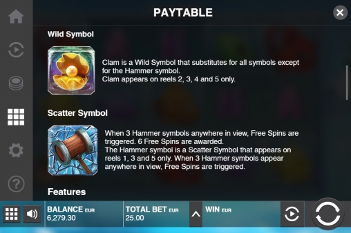 Активные линии отсутствуют. Общая ставка на спин равна условным двадцати пяти монетам. Их стоимость колеблется от одного цента до четырех евро (0.25 – 100 евро на раунд).