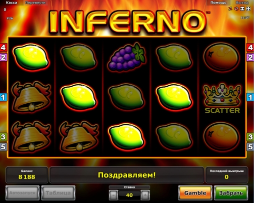 Компания Errel, входящая в состав группы Novomatic, представила бесплатный игровой автомат под названием Inferno, обзор которого для вас подготовили эксперты социальной сети Casinoz. Это модель с довольно простой графикой и ограниченным выбором предлагаемых функций. Обо всех ее достоинствах и недостатках читайте ниже.