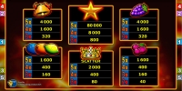 Таблица выплат состоит из двух страниц. На первой можно увидеть коэффициенты выигрышей по комбинациям, а на второй объясняются общие правила игры, а также предлагается схема расположения линий на барабанах.