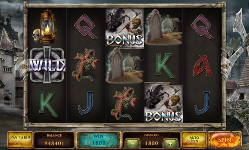 Главные персонажи игры, могилы, кресты, топоры, свечи, черепа и буквы J, Q, K и А – эти картинки появляются на барабанах.