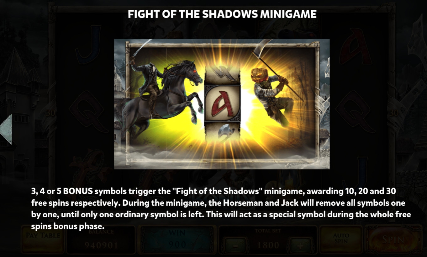 Jack O'Lantern Vs the Headless Horseman – игровой автомат с пятью барабанами, тридцатью фиксированными линиями и пятнадцатью ячейками для символов на главном экране.
