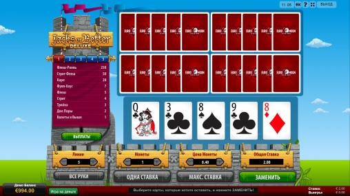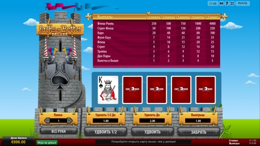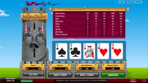Цель – собрать покерную комбинацию от пары валетов и старше. Есть возможность один раз бесплатно менять до пяти карт.