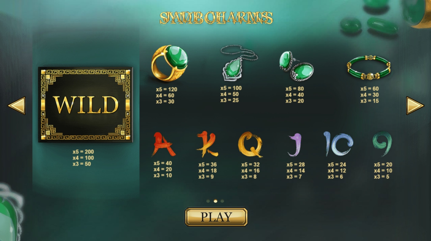Выплаты рассчитываются по классическому принципу: ставка по линии умножается на специальный коэффициент, предусмотренный правилами для каждой из возможных комбинаций. В Jade Charms он бывает от х5 до х200. Очень часто в одном спине составляются несколько выигрышных вариантов.