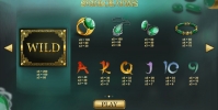 На барабанах видео-слота появляются различные украшения с зелеными камнями, а также написанные кистью буквы и цифры, обозначающие номиналы игральных карт. Некоторые символы могут идти на барабанах полосами.