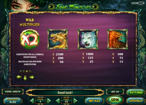В Jade Magician нет игры на удвоение. Нестандартные символы и бонусы рассматриваются ниже.