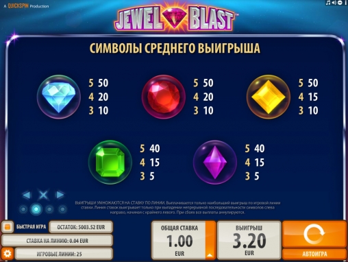 В справочном разделе говорится, что в Jewel Blast заложен возврат на уровне 96,52%.