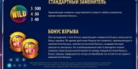 - Bonus Wild не приносит выигрышей сам по себе. Он заменяет прочие символы, за исключением базового Wild, и участвует в так называемом «Бонусе взрыва». О нем читайте ниже.