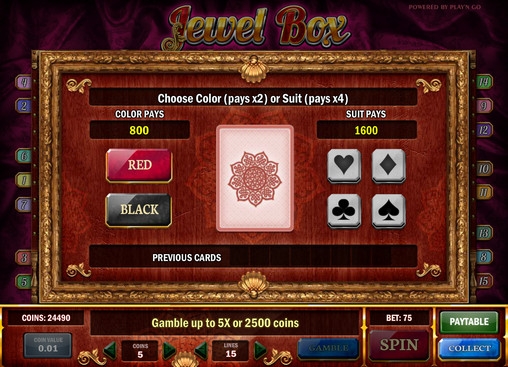 В Jewel Box предусмотрены особые символы, бонусный раунд, дополнительные множители, рискованная игра по шансам и другие опции.