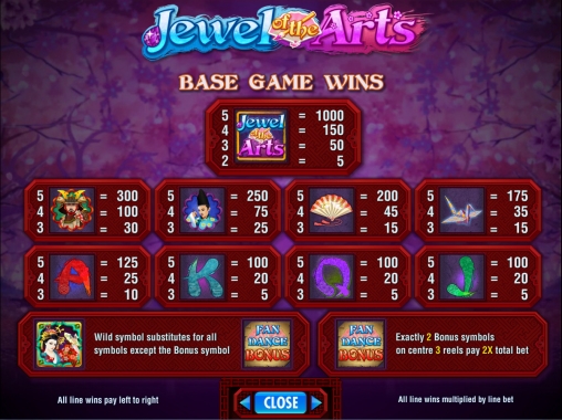 Новый бесплатный игровой автомат Jewel of the Arts, который представляет знаменитая компания IGT, посвящен японской культуре с ее своеобразной живописью, танцами, оригами и другими видами искусств. Нельзя сказать, что эта модель отличается совсем уж необычными особенностями, но ее точно можно назвать очень качественной и действительно интересной. Думаем, вы согласитесь с нами, когда протестируете игру.