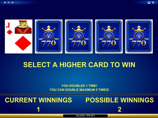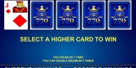 Далее пользователь может забрать выигрыш или поставить его на кон в игре по шансам. Здесь необходимо наугад открыть одну из четырех карт. Если она окажется старше карты дилера, выплата удвоится. Если она младше, пользователь теряет ставку.