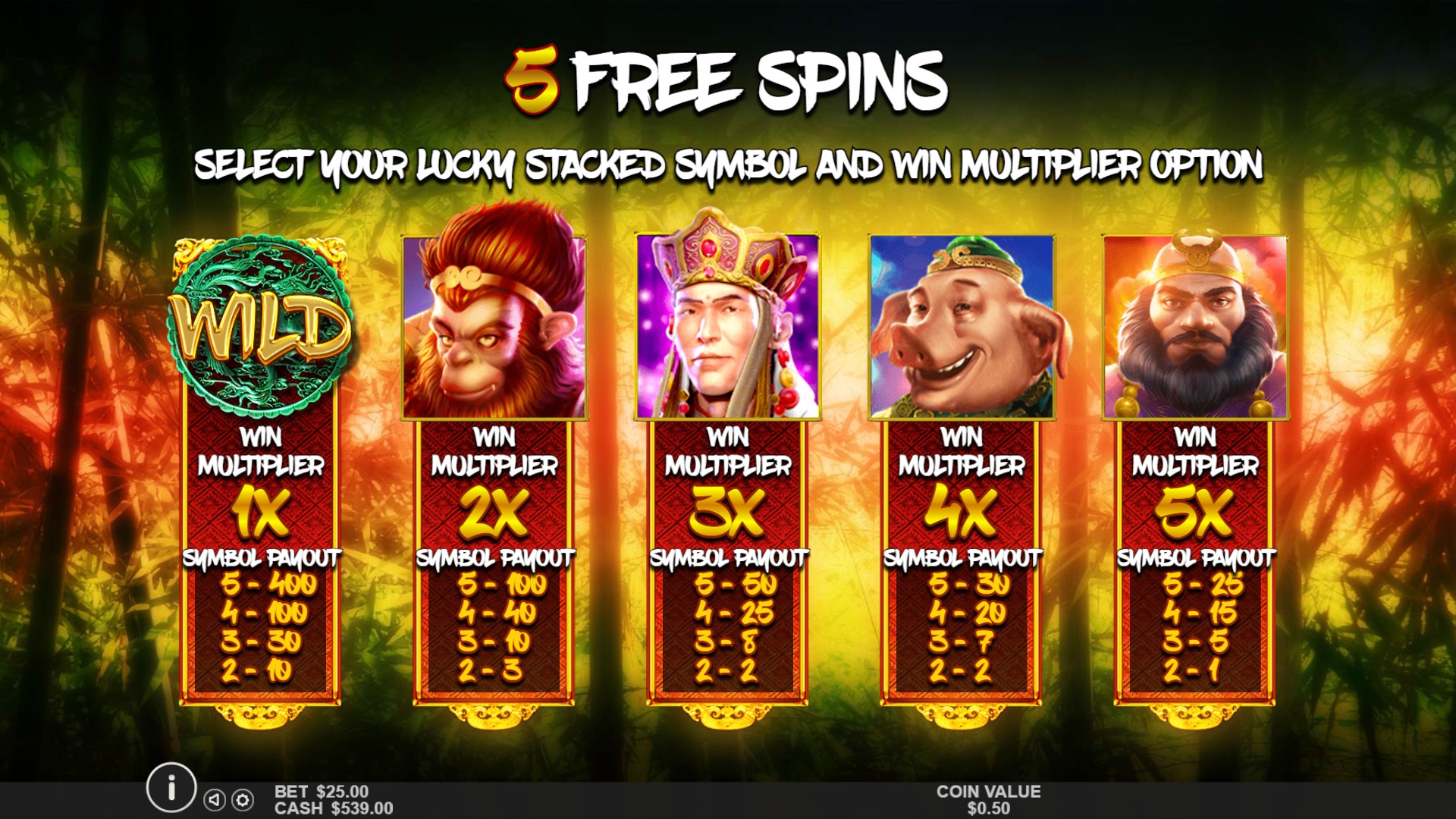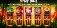 Игровой автомат «Путешествие на Запад» имеет один вид бонусов. Речь идет о пяти бесплатных вращениях. Они предлагаются в пяти разновидностях, из которых пользователь сам выбирает одну.