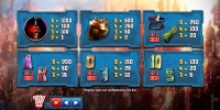 Набор картинок, используемых на барабанах видео-слота, предсказуем. Это различные персонажи и узнаваемые элементы экипировки, которые они использовали. Также на экране появляются буквы и цифры, обозначающие номиналы игральных карт от девятки до туза. Они нарисованы в стиле, характером для этой серии комиксов.