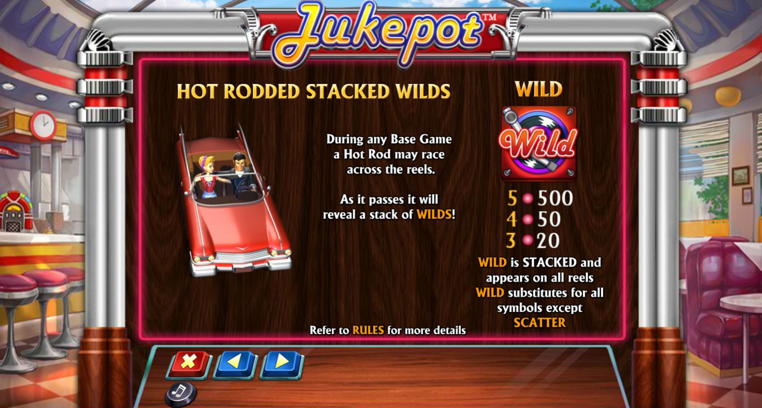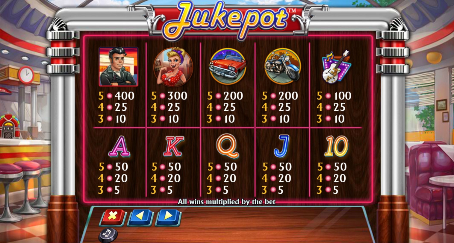 Игровой автомат Jukepot компании NextGen Gaming перенесет вас в Соединенные Штаты времен Элвиса Пресли, когда молодые люди разъезжали по улицам на хотродах, а обязательным атрибутом придорожных кафе были музыкальные автоматы. Именно в стиле такого “jukebox” выдержана модель, о которой пойдет речь в обзоре Casinoz.