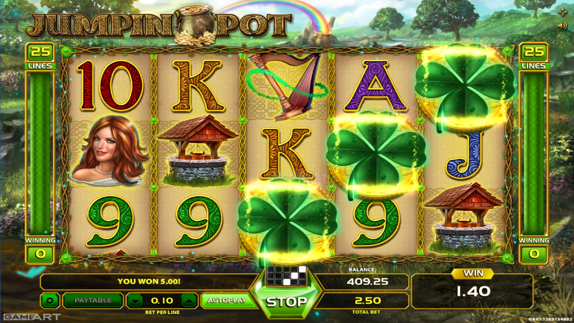 Украшенные традиционной вязью номиналы карт от девятки до туза, колодец, арфа, гриб, рыжеволосая красавица и лепрекон в зеленом цилиндре – эти картинки являются обычными и действуют по общим правилам.