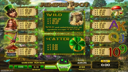 И вновь мы рассматриваем игровой автомат, главным героем которого является лепрекон. Не секрет, что этим озорным персонажам старинных ирландских легенд разработчики софта для онлайн-казино очень часто посвящают новые модели. Аппарат под названием Jumpin’ Pot выпустила компания GameArt. Он порадует вас замечательной графикой с великолепной детализацией и отменными анимационными эффектами. Ключевые характеристики дизайна и геймплея рассматриваются в обзоре экспертов Casinoz.