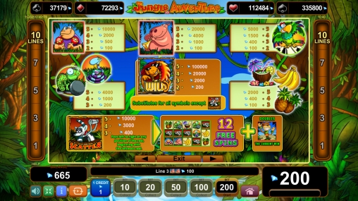 Разработчики предлагают в Jungle Adventure базовые картинки, джокеры, скаттеры, дополнительные множители, игру на удвоение, фри-спины и четыре накопительных джекпота.