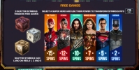 В игровом аппарате «Лига справедливости» задействованы обычные символы, джокеры, скаттеры, фри-спины, накопительные джекпоты и бонусные розыгрыши.
