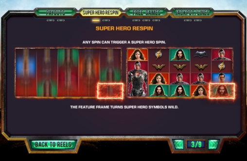 В Justice League разыгрываются четыре накопительных джекпота Playtech: Mini, Minor, Major и Grand. Любой из них можно получить в обычном спине при условии, что вы играете на деньги. Чем крупнее ставка, тем выше шансы стать участником специального раунда.