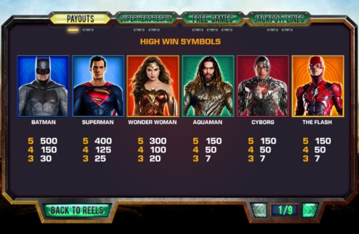 Выигрыши рассчитываются по коэффициентам от х3 до х750. Они умножаются на ставку по одной линии. Об исключениях читайте ниже в обзоре Justice League от Casinoz.