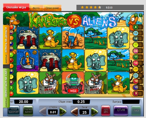 Любого игрока, который решит испытать удачу в игровом автомате «Кенгуру против пришельцев», ожидают игровые раунды с таким партнером, как прыгучее животное. Вместе с ним геймер вступает в удивительные сражения против незваных пришельцев. Поверьте, это увлекательно и полезно, поскольку выигрыши в слоте реальные.