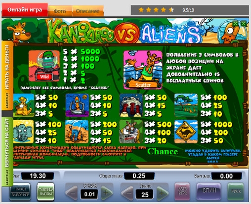 Не имеет «Кенгуру против пришельцев» и накопительного джек-пота.