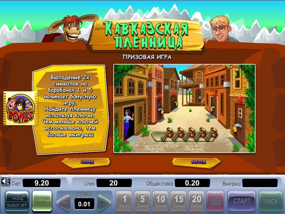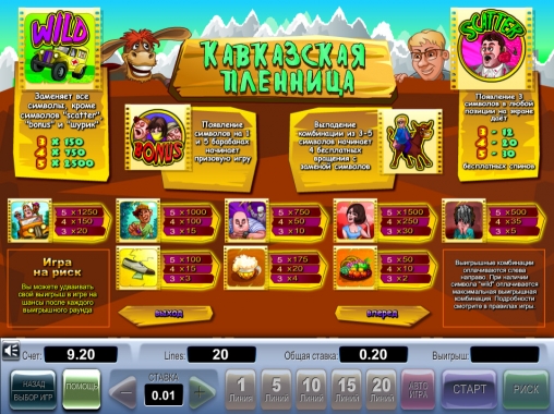 Комедия Леонида Гайдая «Кавказская пленница» в представлениях не нуждается. Вряд ли среди читателей Casinoz найдется человек, который ни разу не следил за приключениями забавных персонажей фильма. А вот игровой автомат, посвященный этому шедевру, скорее всего, тестировали далеко не все. Уверяем вас, он вам понравится, ведь данный слот обладает замечательной графикой, несколькими увлекательными функциями и массой других достоинств, о которых рассказывается далее в обзоре.