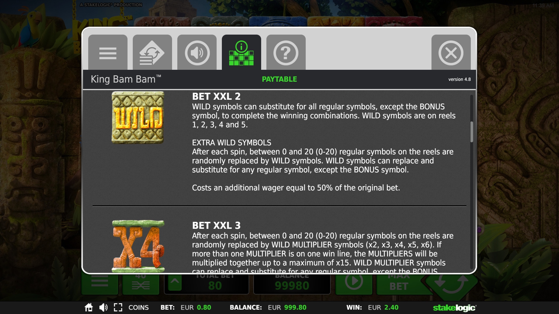 Игровой аппарат King Bambam от компании StakeLogic перенесет вас в далекие джунгли, где, вдалеке от людей, правит своим племенем добродушный король павианов Бамбам. Модель представляет интерес красочным дизайном и широким разнообразием всевозможных опций, включая необычные бонусы и большое количество комбинаций. Читайте далее обо всех возможностях, реализованных в игре.